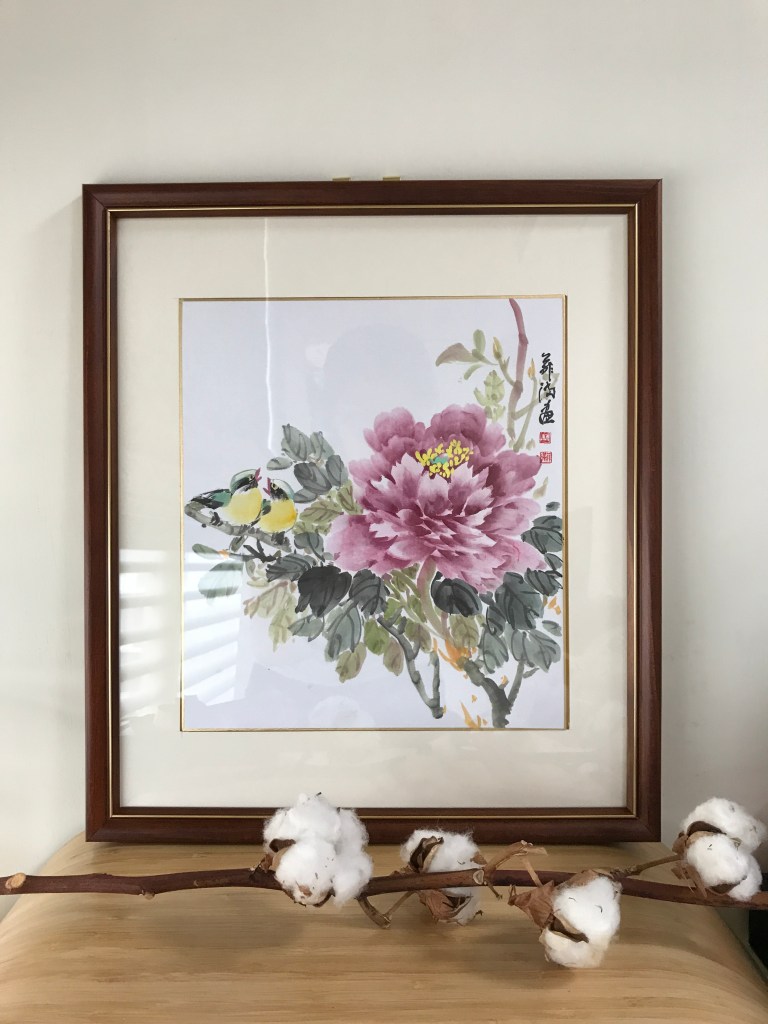 建議選擇以牡丹、長春花等題材為主的花鳥畫,展現祥和喜悅、圓融豐盛的意境,寓意和鳴花好、富貴吉祥,提升環境的美感層次。