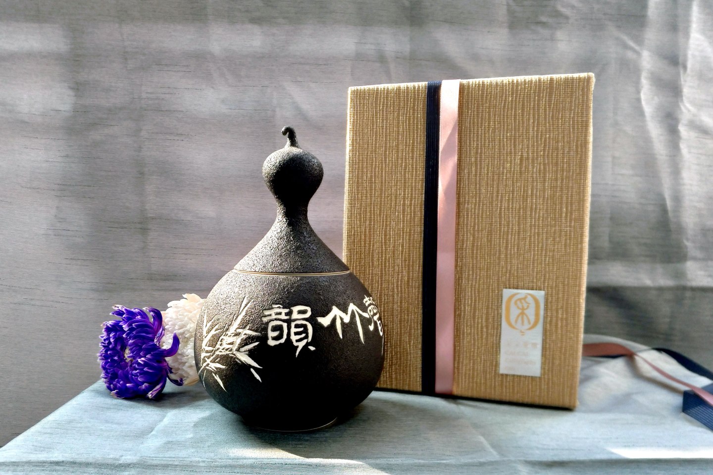 推薦選品一:石頭釉福祿茶葉罐系列。通體施以黝黑簡練的石頭釉色,結合瓷器特有的溫潤手感,以及石雕的粗礪沉穩,能為辦公空間打造出簡約大氣的人文質感。渾圓飽滿的葫蘆器形,是「福祿」的象徵,寓意著福運連連,財源廣進;又有子孫繁衍昌盛的美好頌賀。這樣別具一格、意兆嘉祥的藝術禮品,最能彰顯禮贈者的用心誠意,讓客戶感受到品牌殷切的祝福之意。