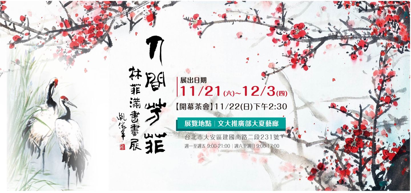 - 展覽地點:文大推廣部大夏藝廊(臺北市大安區建國南路二段231號1F)