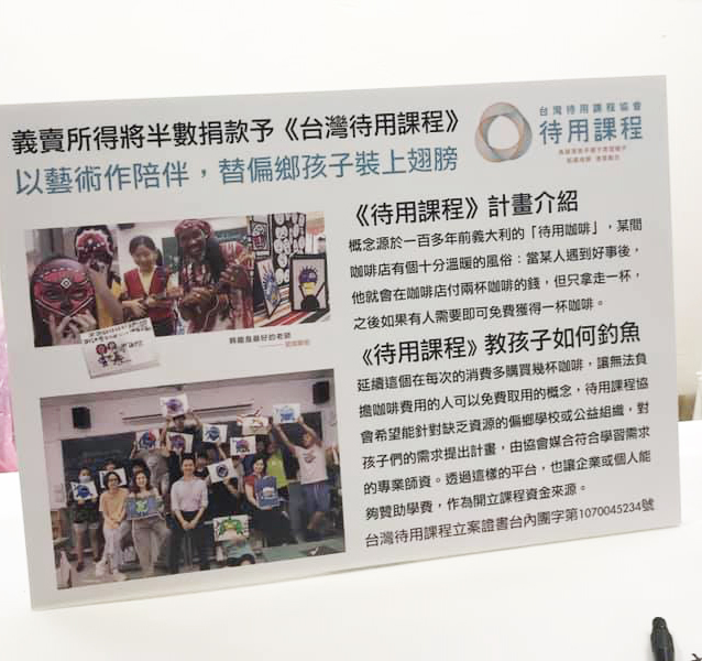 與上次個展相隔已是4.5年,菲滿老師特別將書、畫、瓷器作品同時展出,落實將藝術美學結合生活實用機能的理念,特將茶點區以瓷盤器皿作品搭配花藝佈置其中,並結合公益活動,收藏特區所得半數將捐贈給台灣待用課程協會,疫情年的關係許多捐款天使都收手,但是協會不忍對孩子說募款不足而無法開課,課程並沒有因此而中斷,林菲滿老師知曉後,表示支持協會的理念,特別推廣展覽兼作公益,以藝術作為陪伴,為偏鄉學子戴上希望的翅膀,真正發揚真善美的精神!