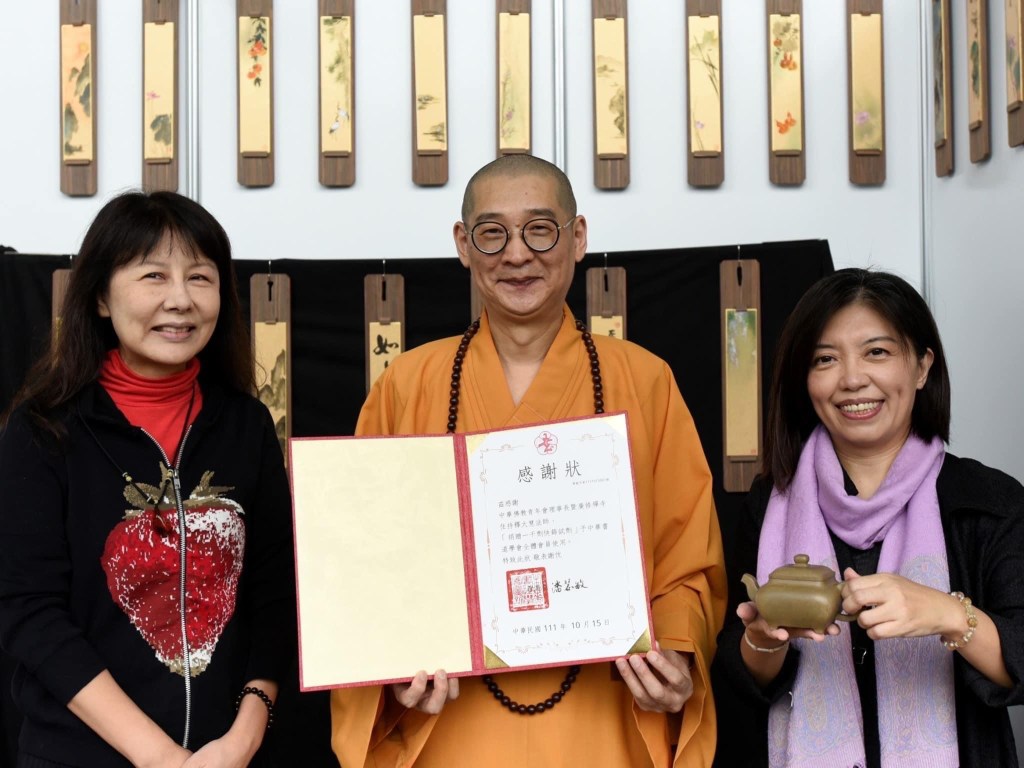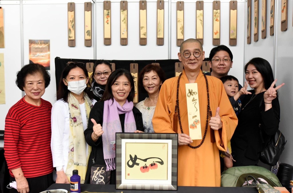 .中華佛教青年會理事長 大慧法師現場揮毫 <柿杮如意> 並贈送快篩劑1000份