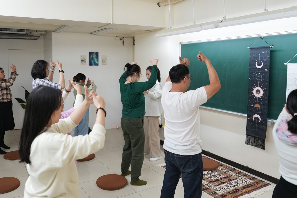動功完隨後才開始每堂的主題分享,主題分為身、心、靈 三位一體的系列,也藉此和大家交流擴聚與共振豐盛頻率,可以自由選擇報名單堂或是每堂都來都歡迎,更重要的就是個開放讓大家來動一動的機會,有興趣的朋友歡迎來跟我一起練練功!