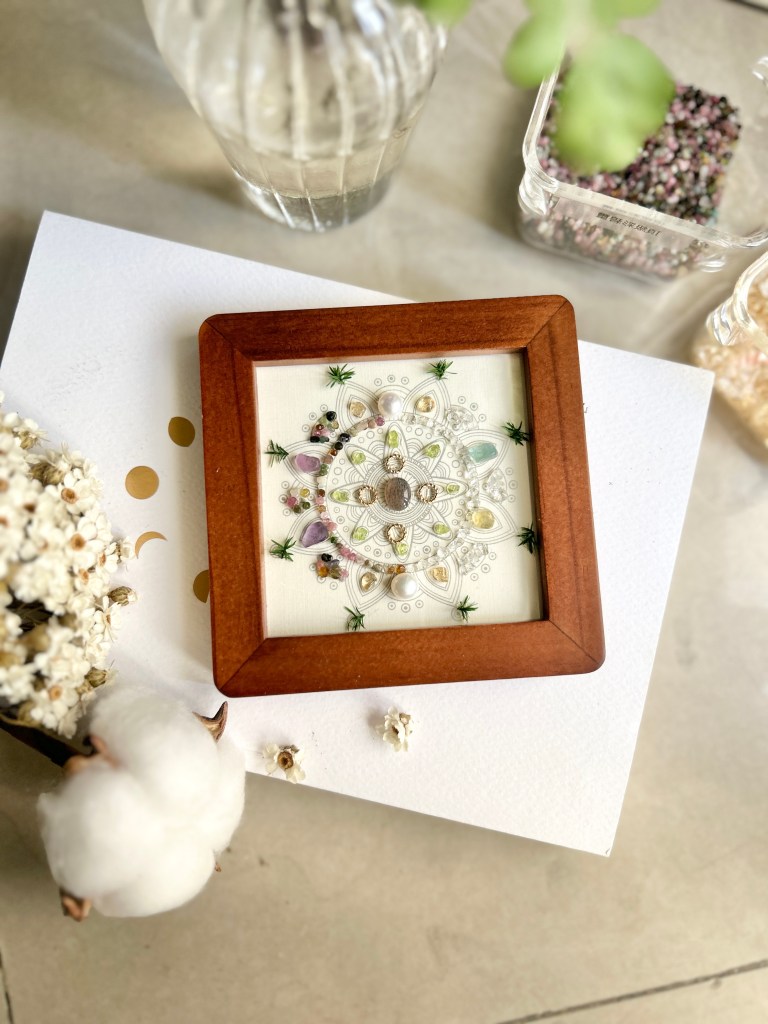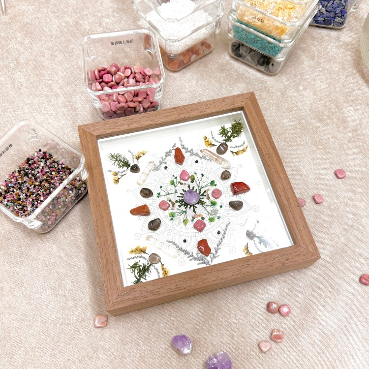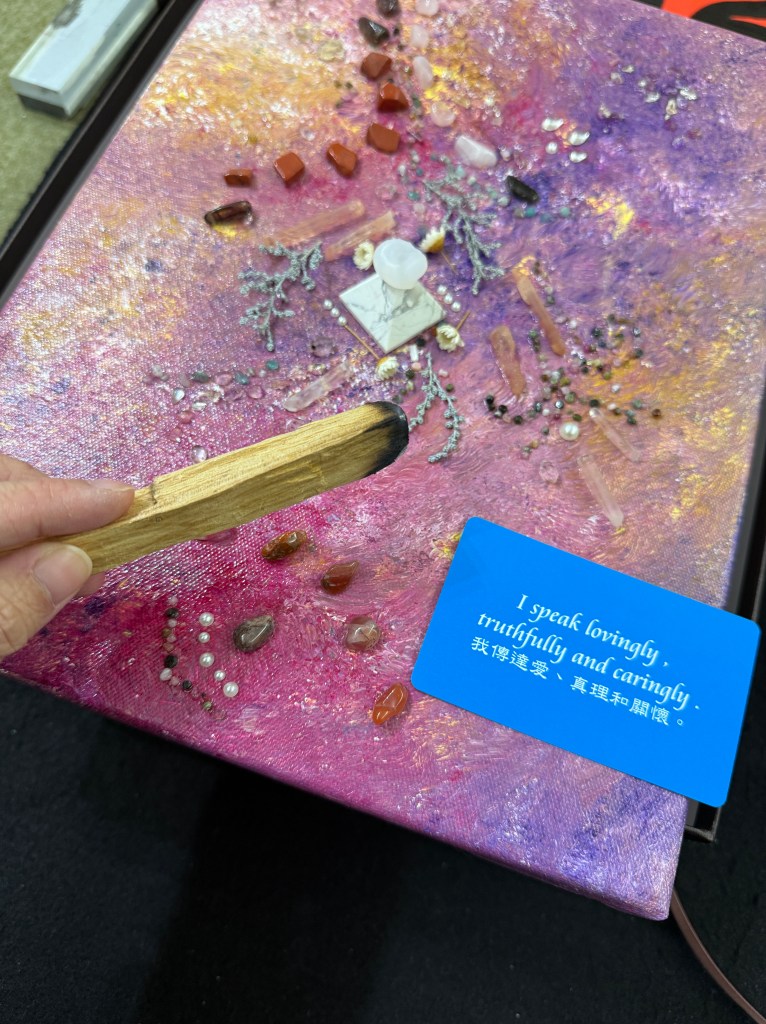 開水龍頭沖流動的水10分鐘,大自然的瀑布、乾淨的溪水更棒。梅林夫人帶領創作之水晶畫作無法直接沖水,因此以小毛刷彈掉灰塵、或噴灑午時水、精油噴霧等維持乾淨即可,適用大多數水晶,須避開不能碰水之礦石(如孔雀石、天青石)。