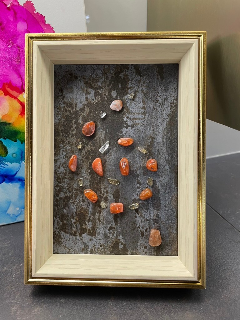 象徵火、風元素,使用鼠尾草淨化能量、聖木補滿豐盛能量、在畫作旁點檀香、蠟燭(酥油燈、精油蠟燭)來快速轉化及帶動淨化充能,適用幾乎所有的水晶礦石。